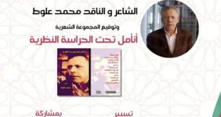 جامعة المبدعين المغاربة تحتفي بالشاعر والناقد محمد علوط في أمسية ثقافية مميزة احتضنت جامعة المبدعين المغاربة بالتعاون مع المكتبة الوسائطية لمؤسسة مسجد الحسن الثاني، يوم السبت 17 مايو، أمسية ثقافية رفيعة المستوى للاحتفاء بالشاعر والناقد المغربي محمد علوط. اللقاء الذي جاء تحت عنوان “أنامل تحت الحراسة النظرية” وبالتزامن مع …