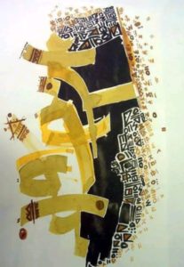 والفنان محمد وفيٌّ للحرف الأمازيغي، يُخضعه للتجريب التشكيلي عبر كل لوحة ليخرج بتركيبات تتخذ منه خلفية لمفرداتها ومكوناتها. وقد يتصدر عناصر اللوحة ليضفي ظلاله ووضعيته على أشكال تتساوق وتتناغم معه لتشكيل سمفونية موحية بماض يتجدد أو بماض يأبى إلا أن يحضر معنا باعتباره يُشكل جزءًا من ذاكرتنا.