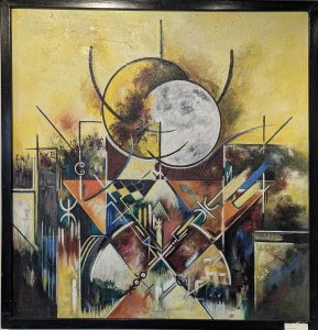 - الخط العربي والروحانية: لم يغب فن الخط العربي، الذي ظهر في لوحة أنيقة ذات تصميم دائري لامع، ما أكد على مكانة هذا الفن كجسر يربط بين الجمال الروحي والتكوين البصري الحديث، لفي إحدى أعمال الفنان الحروفي محمد قرماد