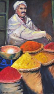 وسنكتشف اليوم جانبا آخر من مساره في مجال التشكيل، من خلال اهتمامه بمواضيع أخرى، تنوع تصوره الفني، وتلون إحساسه بالحياة، حتى لا يظنن به وحدة الاهتمام، وضيق النظر، وقصر الباع. فللرجل مساراته الفنية المختلفة، وتشعباته الرسمية الغنية، إذ اتخذت لوحاته مواضيع مختلفة، جمعت بين حضور الإنسان من خلال رسم لظلال وجه رجل مغربي؛ واستحضار المناظر الطبيعية كالبحر، وأشكال للحصان، تبرز جمال القوة؛ وممارسة للمهن التجارية كالدكاني بائع العطارة؛ وموضوع العقيدة برسم الكعبة والحجيج؛ ثم موضوع الأثاث التزييني كالمزهرية مع باقة الورد، والصورة مع إطارها المعلقة على الجدران، ولوحة مائدة الطعام.