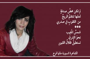 السيرة الذاتية للشاعرة مانيا جورج فرح من مدينة حمص، سوريا كاتبة لـ قصة قصيرة جدا، قصيدة التفعيلة والشعر العمودي، بالإضافة للومضة والشذرة. لها أربعة دواوين الكترونية وورقية من إصدار منتدى نبض الهايكو إعداد ذ. علي القيسي: مرتع الريح، لثغة مطر، عندما يزهر الرماد صادر عن دار ايليا للطباعة والنشر / …